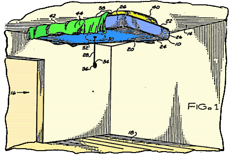 Tired of looking at your table and chairs all day long?  Does your bed take up entirely too much space?  This invention patented in 1989 will allow you to roam your home with no obstacles during the day and sleep easily at night!   This lighter than air furniture can be levitated with helium gas and stored on your ceiling when you're not using it!